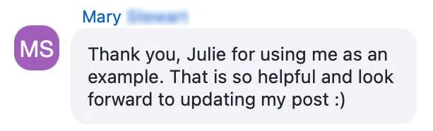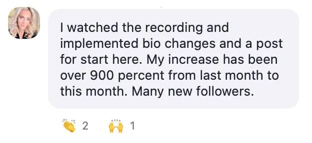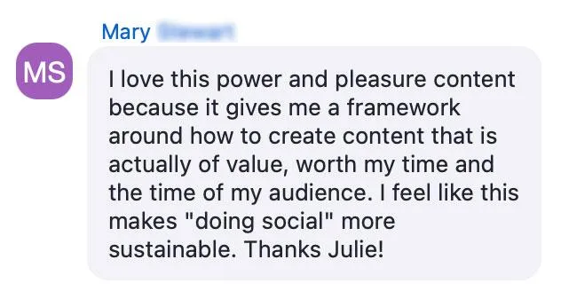 Live group calls where you bring your content for direct review. Julie will refine your posts, stories, and messaging in real time—so you always know what works now.