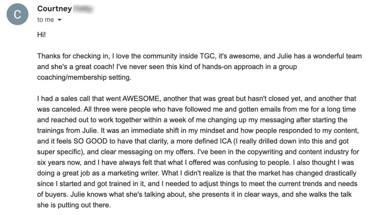 This is the only way to access Julie’s guidance without a $10K+ investment.